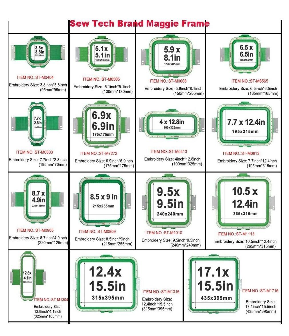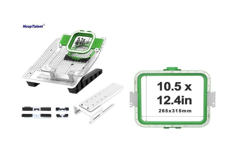 - 2 Kappenrahmen je Kopf für 270 Grad Stickerei